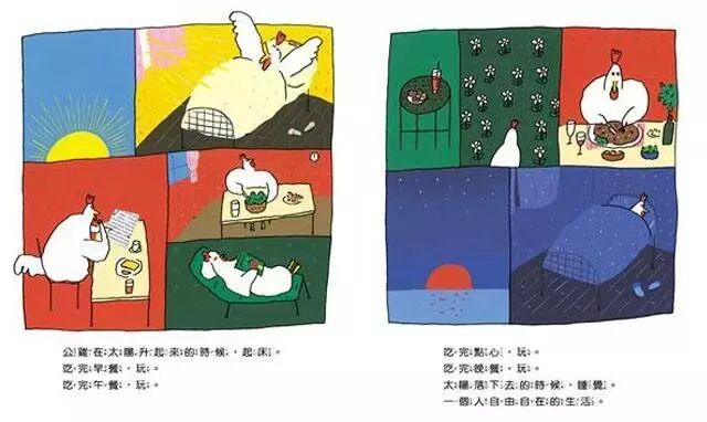 公鸡在太阳升起来的时候,起床。