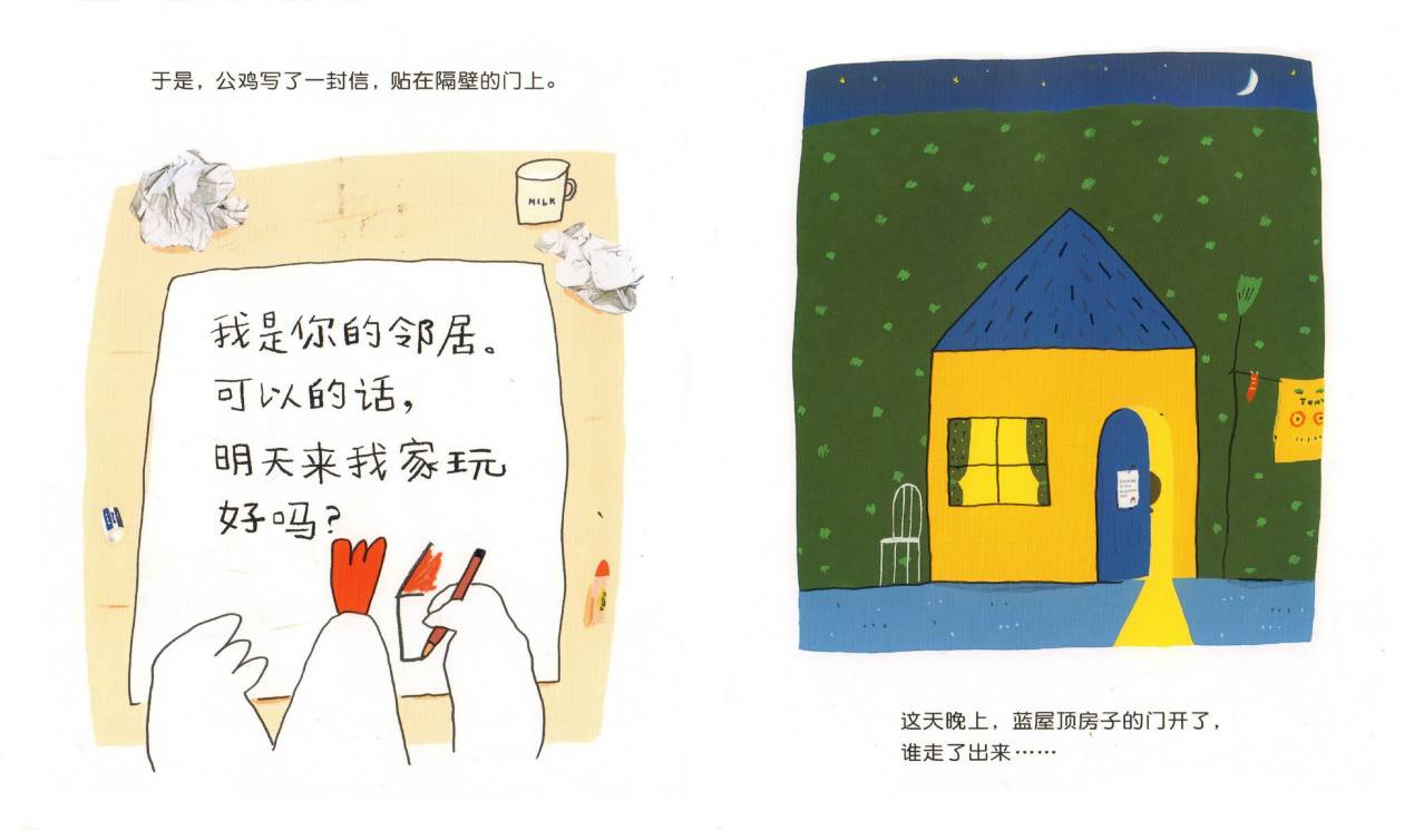 于是,公鸡写了一封信,贴在隔壁的门上。