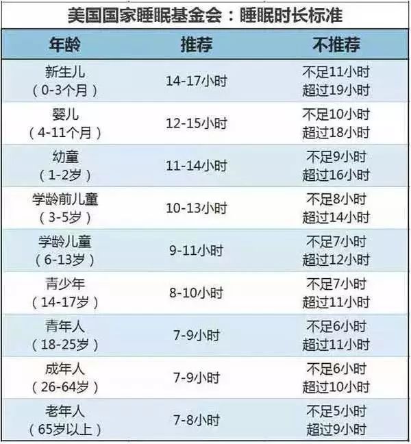 上图中显示,学龄儿童前儿童应该保证10~13小时睡眠,学龄儿童应该每天保证有9~11小时的睡眠。