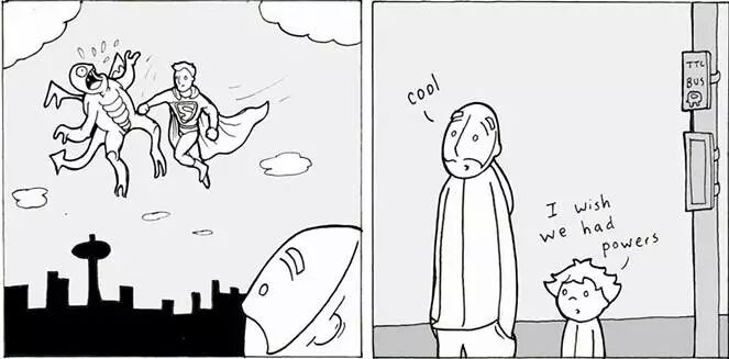有一天,儿子看着超人的故事,对我说,“我也希望我有超能力。”