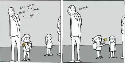 一次,我看到儿子一直盯着旁边的女孩,还把花送给她。