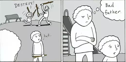 当孩子捡起掉落的树枝时,有一种爸爸会马上说:“不,宝贝,这很危险,把它放下来!”