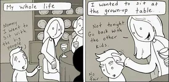 小时候,我总央求妈妈:“我想要跟大人一起坐。”