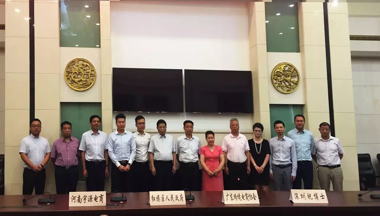 2017年6月22日上午,新乡市红旗区政府、广东跨境电商协会、祝博士教育、河南宇源孵化器公司就“跨境电商学院政校行企联合办学项目”在新乡市人民政府隆重举行签约仪式。新乡市政府周世杰副市长、新乡市政府办孙传勇副主任、新乡市发改委张文慧主任、新乡市商务局薛永宏局长、新乡市红旗区区委郑援越书记、红旗区区委王景书副书记、红旗区政府刘光朋常务副区长、红旗区政府李炜副区长广东跨境电商协会吴航秘书长、祝博士教育王永霞董事长、河南宇源孵化器公司刘玉涛总经理及新乡市等领导及企业相关负责人出席此次签约仪式,共同见证了这一历史性时刻。