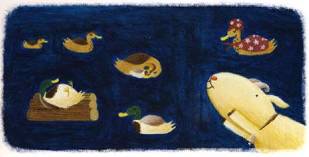 莎莎对着池塘叫,“咩!”,可是鸭子们谁也不起来。