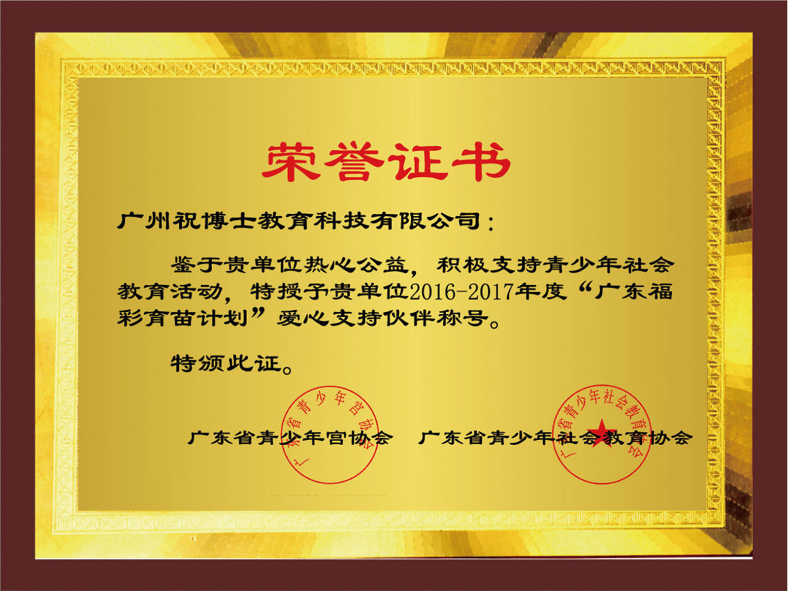 08月,荣获“广东福彩育苗号计划爱心支持伙伴”荣誉称号